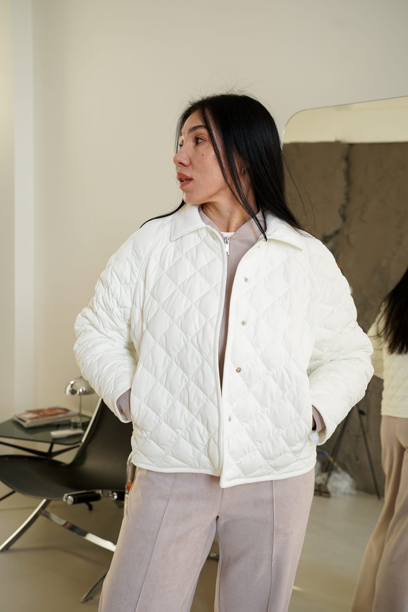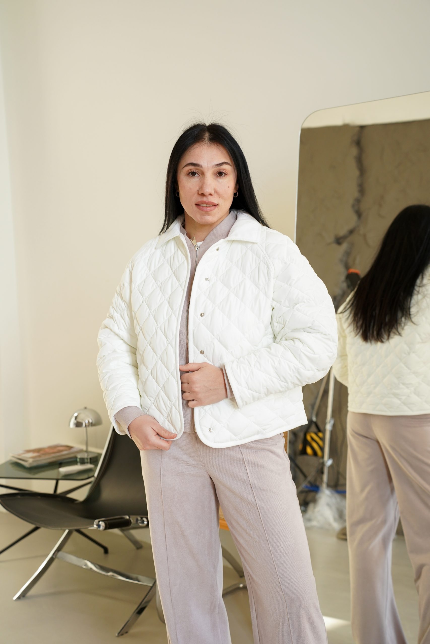 Эта стильная стёганая демисезонная куртка с воротником станет отличным выбором для тех, кто ищет идеальный вариант для прохладных осенних и весенних дней. Её универсальный дизайн позволяет легко сочетать куртку с разными стилями одежды, что делает её незаменимой в гардеробе современной женщины. Лёгкая, но в то же время тёплая, она обеспечивает комфорт и надёжную защиту от переменчивой погоды.