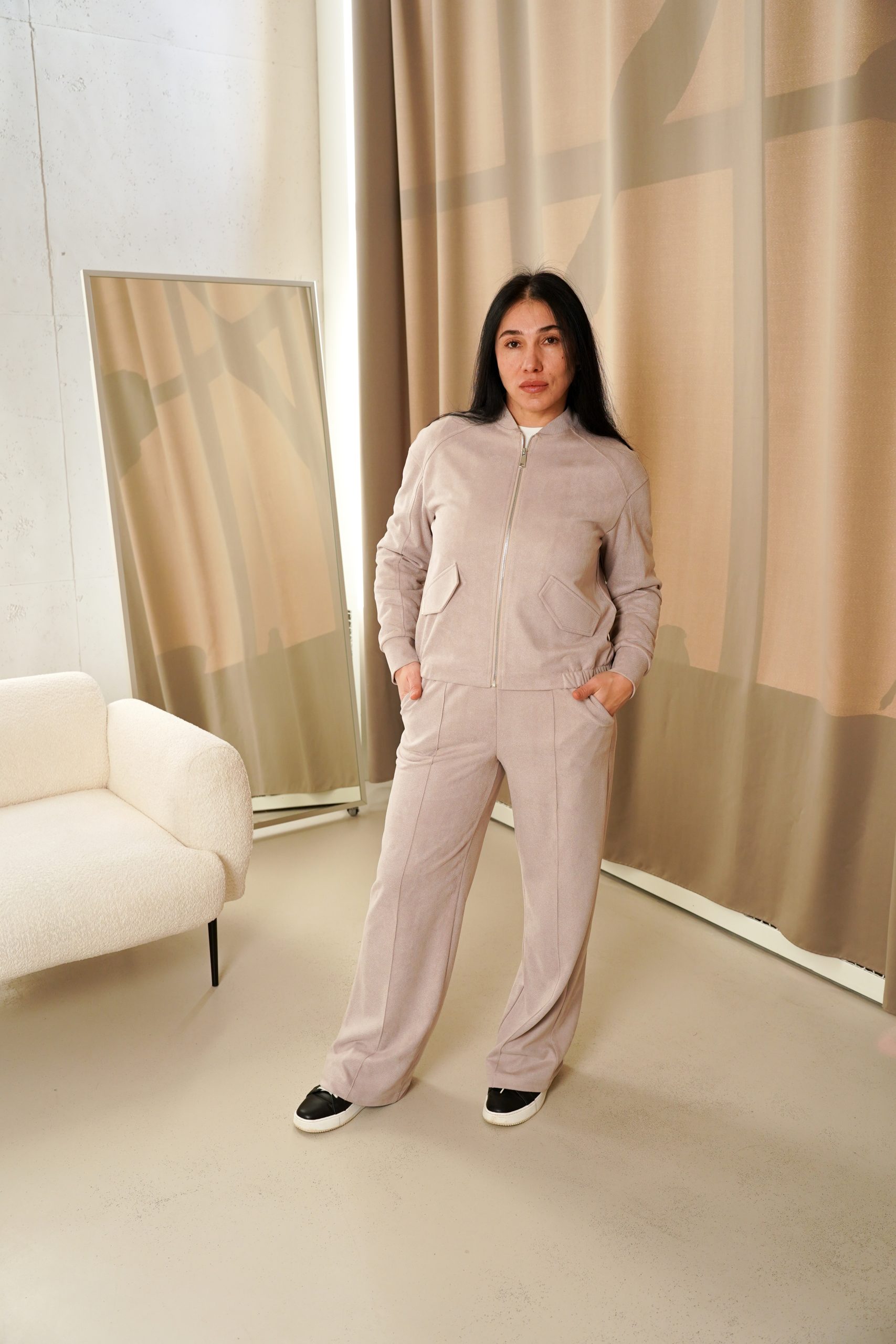 Этот костюм отвечает новейшим модным тенденциям, предлагая стильный, но одновременно комфортный образ. Свободный крой и простота дизайна делают его универсальным для любого гардероба, подходит для повседневной носки или для более расслабленного образа. Костюм смотрится актуально и стильно, что позволяет вам всегда быть в тренде.