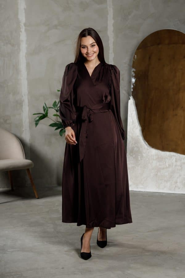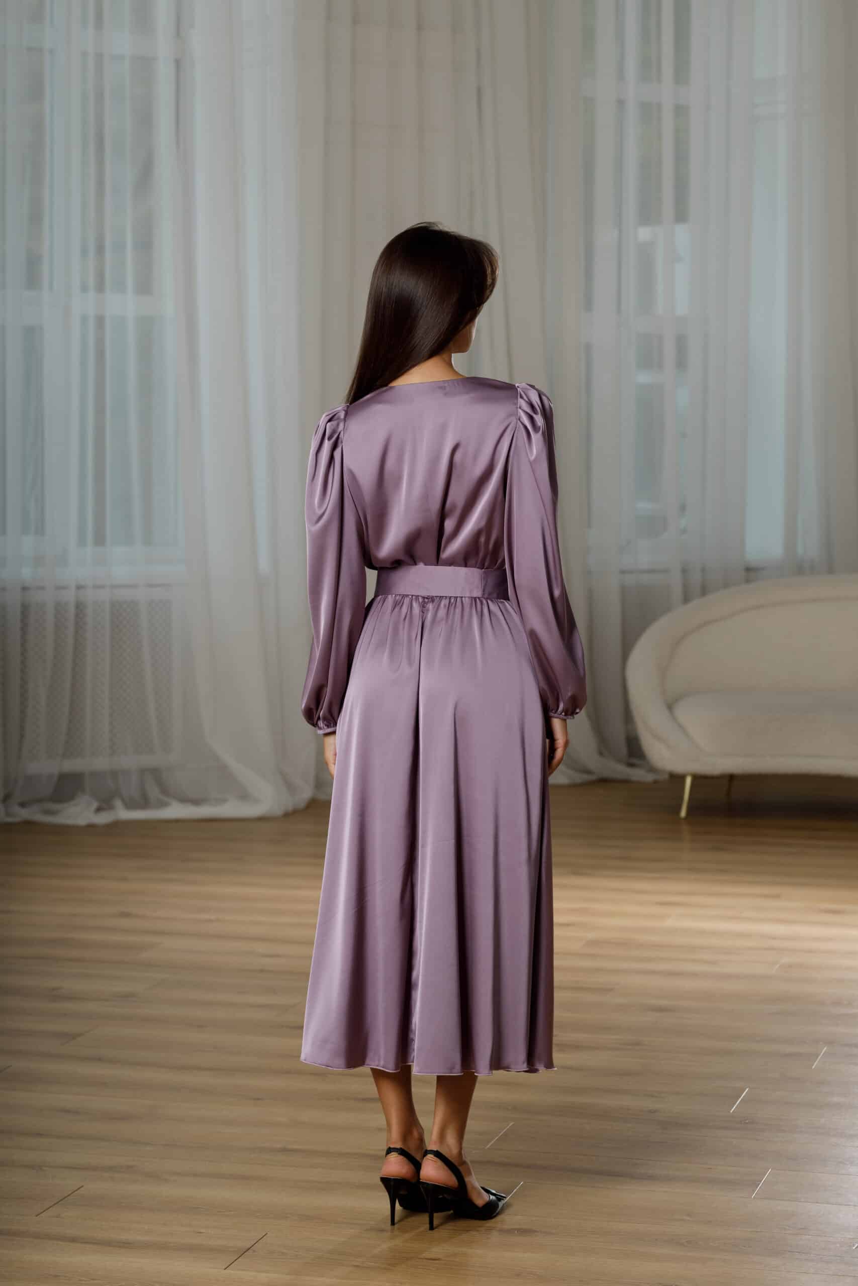 Сукня має витончений силует, який підкреслює вашу талію завдяки стильному паску. Розріз вздовж ноги додає елегантності та дозволяє вільно рухатися, роблячи образ ще більш привабливим. Цей деталь не лише естетично привабливий, але й практичний, адже забезпечує комфорт під час носіння.