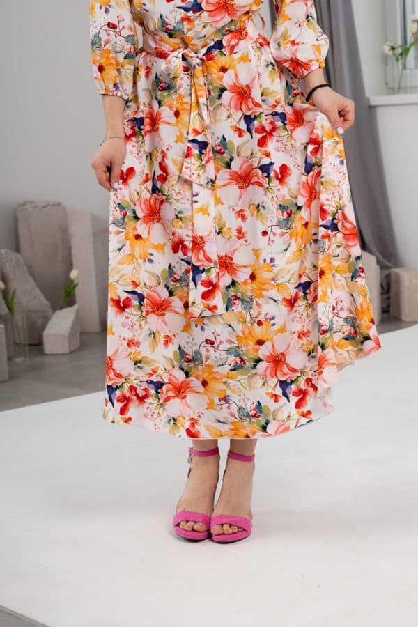 Эта модель имеет стильный дизайн с упором на деталях. Ремень на талии позволяет регулировать объем платья, подчеркивая силуэт. Резиночки на рукавах добавляют нотку романтики и женственности, делая образ более нежным и утонченным. Яркий цвет платья привлекает внимание и придает энергии вашему стилю.
