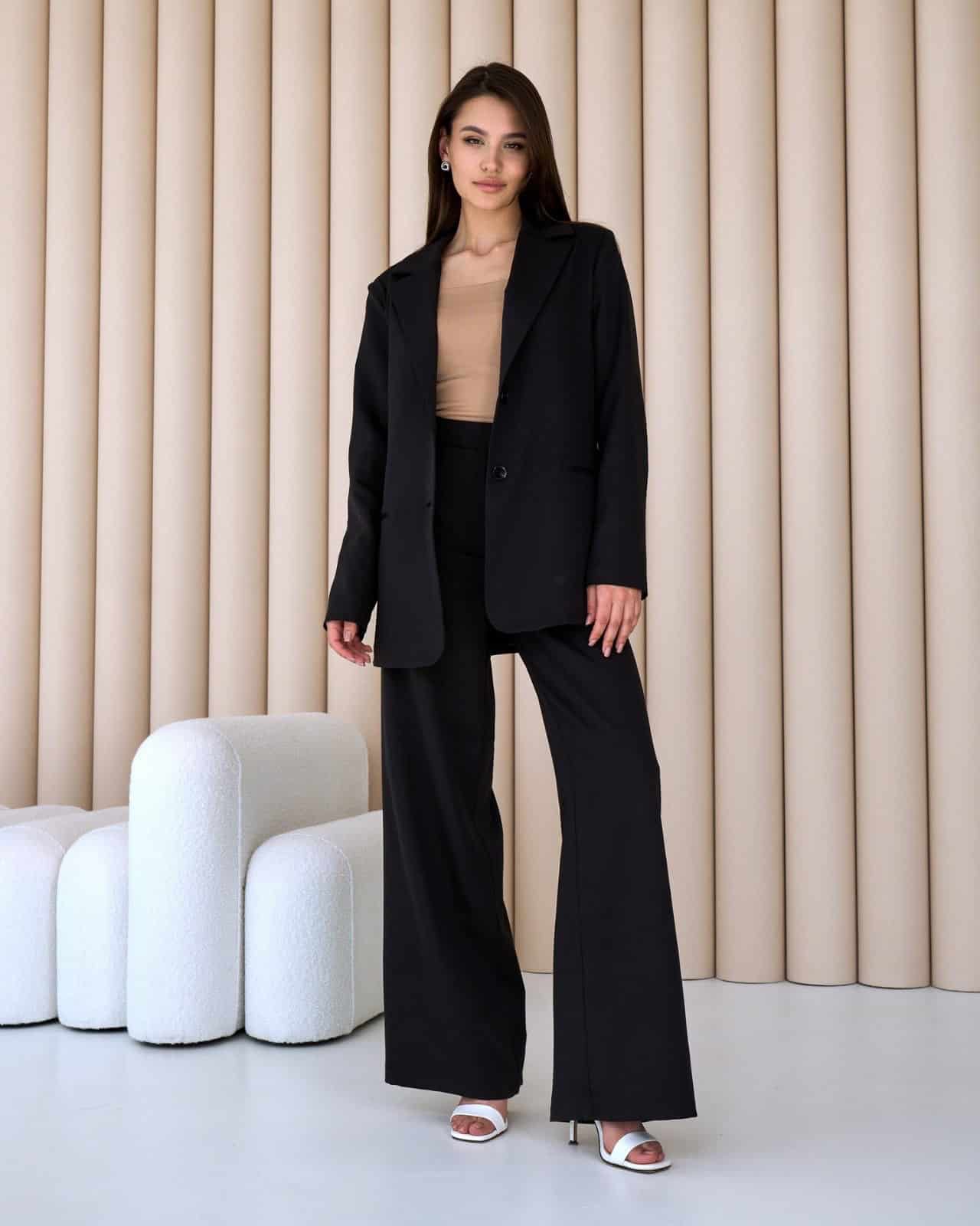 Дизайн костюма відповідає сучасним трендам моди, що дозволяє створювати стильні та актуальні образи. Завдяки універсальності крою костюм пасує як для ділових зустрічей, так і для неформальних заходів чи прогулянок. Ви завжди виглядатимете елегантно та впевнено.