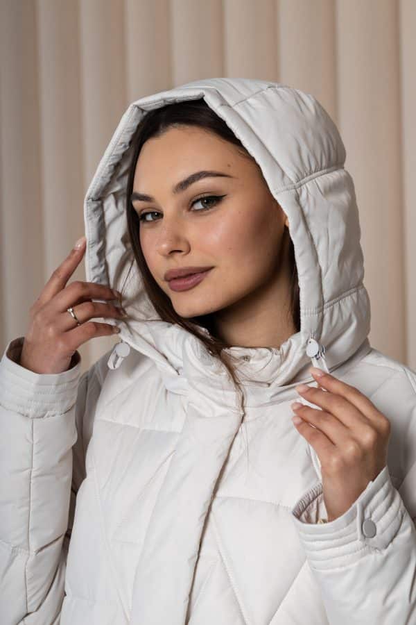 Ця стильна демісезонна куртка з капюшоном – ідеальний вибір для тих, хто цінує поєднання елегантності та функціональності. Вона чудово підходить для осінньо-весняного періоду, коли погода може змінюватися в будь-який момент. Куртка стьобана, що забезпечує комфортне тепло, не обтяжуючи вашу фігуру, і забезпечує додатковий захист від вітру та холодного дощу.