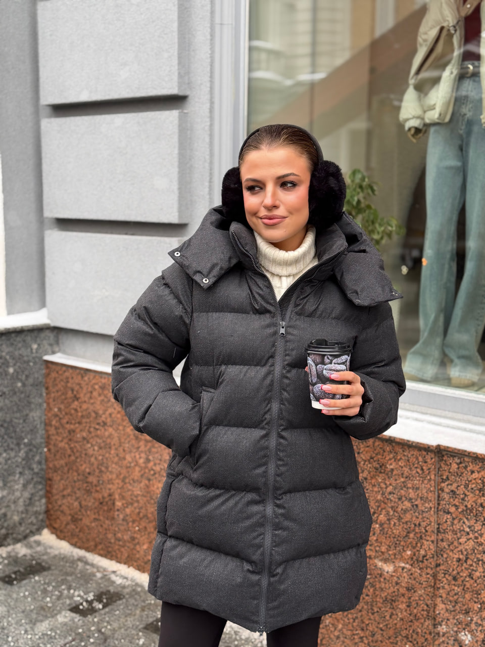 Ця елегантна подовжена зимова куртка, яка ідеально втілює поєднання комфорту та сучасного стилю. Практичність для повсякденного життя – чи то розмова по телефону на прогулянці, чи просто casual-образ. Подовжений силует з об'ємним капюшоном захищає від вітру та снігу, а горизонтальні стьобані секції додають візуальної текстури та об'єму. Дизайн куртки універсальний: вона підійде для міських буднів, виходів на природу чи навіть легких подорожей.
