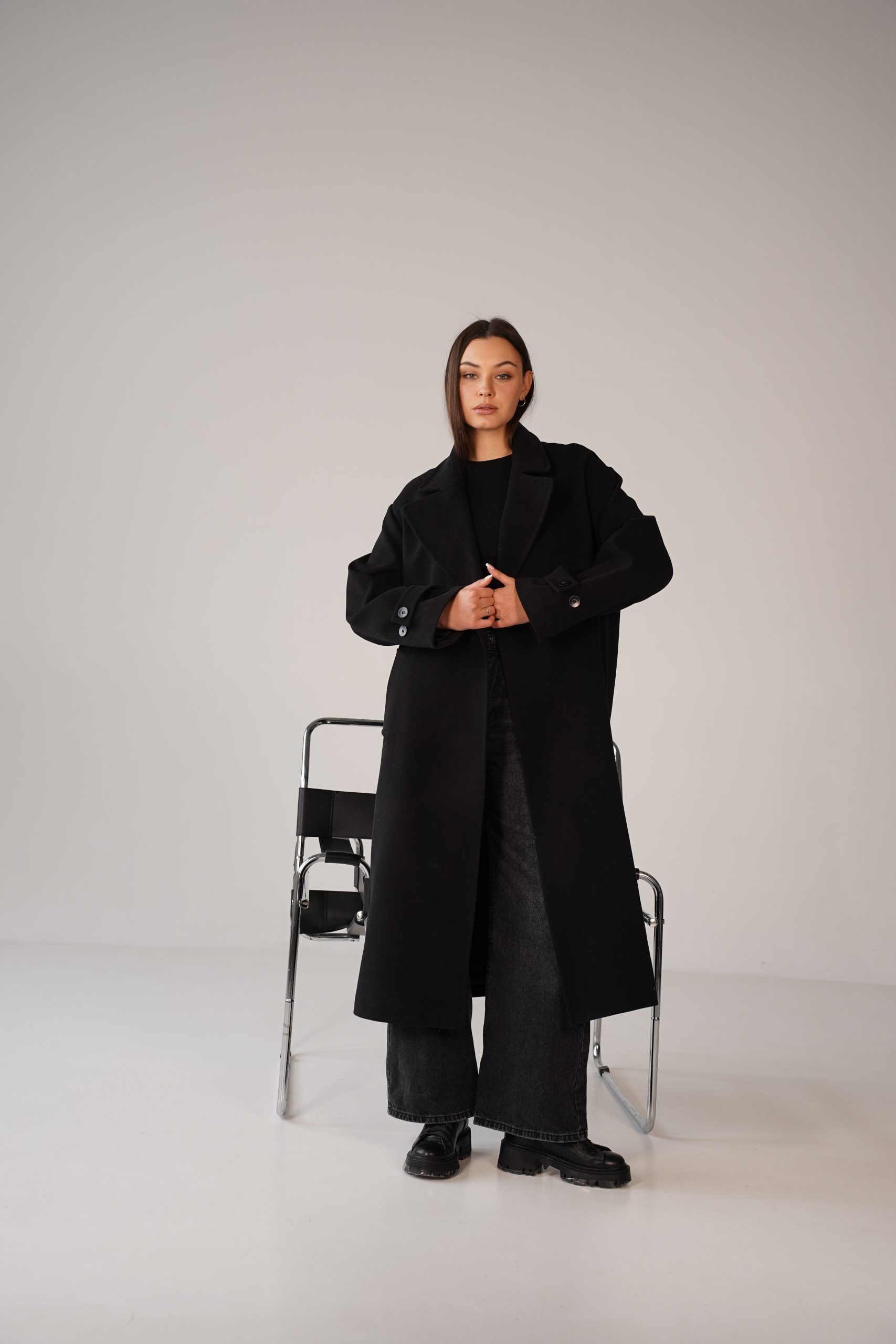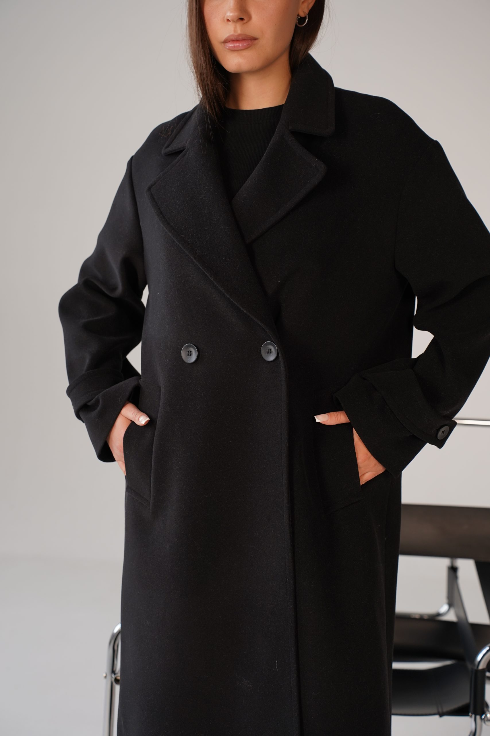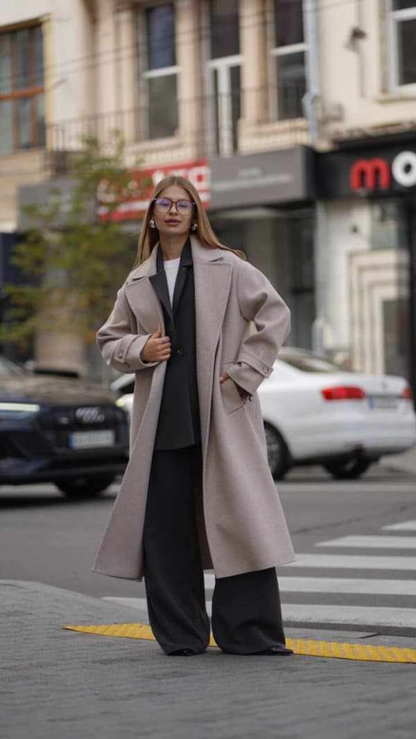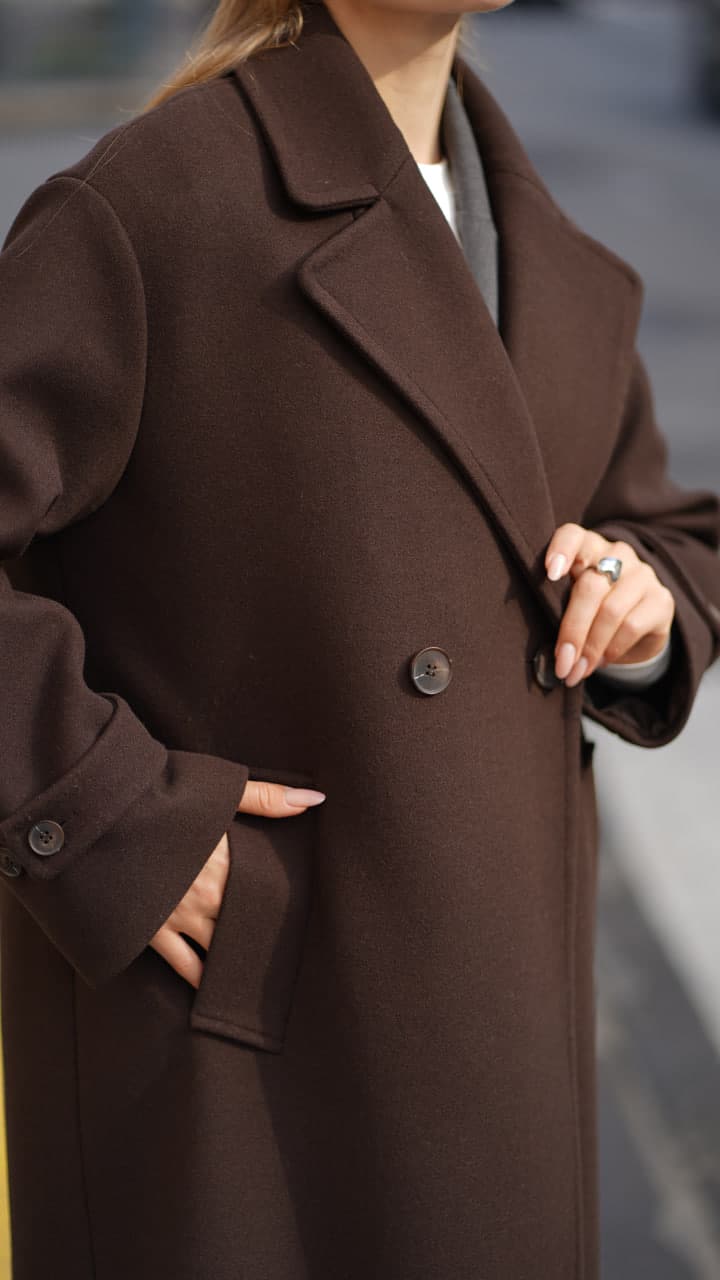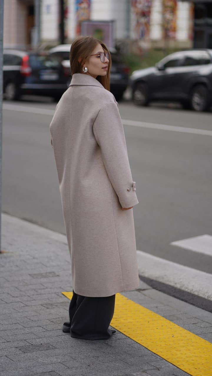 Закривається пальто на гудзики, виконані у кольорі самого виробу, що створює стильний та гармонійний зовнішній вигляд. Такий дизайн підкреслює сучасний стиль пальта, перетворюючи його на базову модель, яка легко впишеться у будь-який гардероб. Ви зможете носити його у поєднанні з різними образами, створюючи як романтичні, так і більш строго ділові образи.
