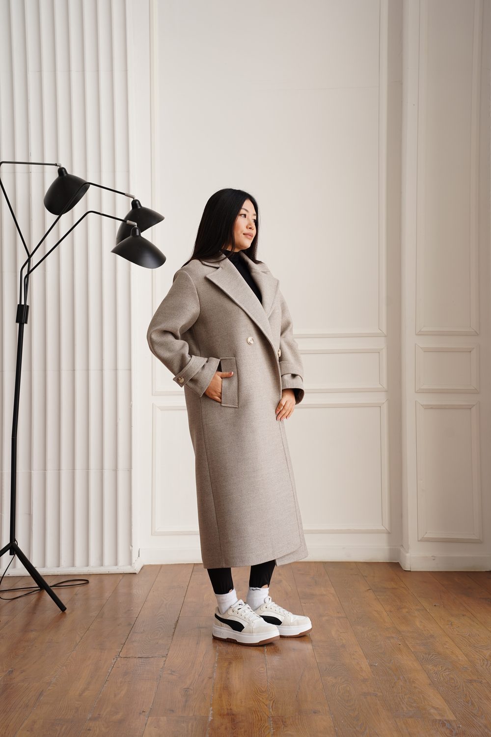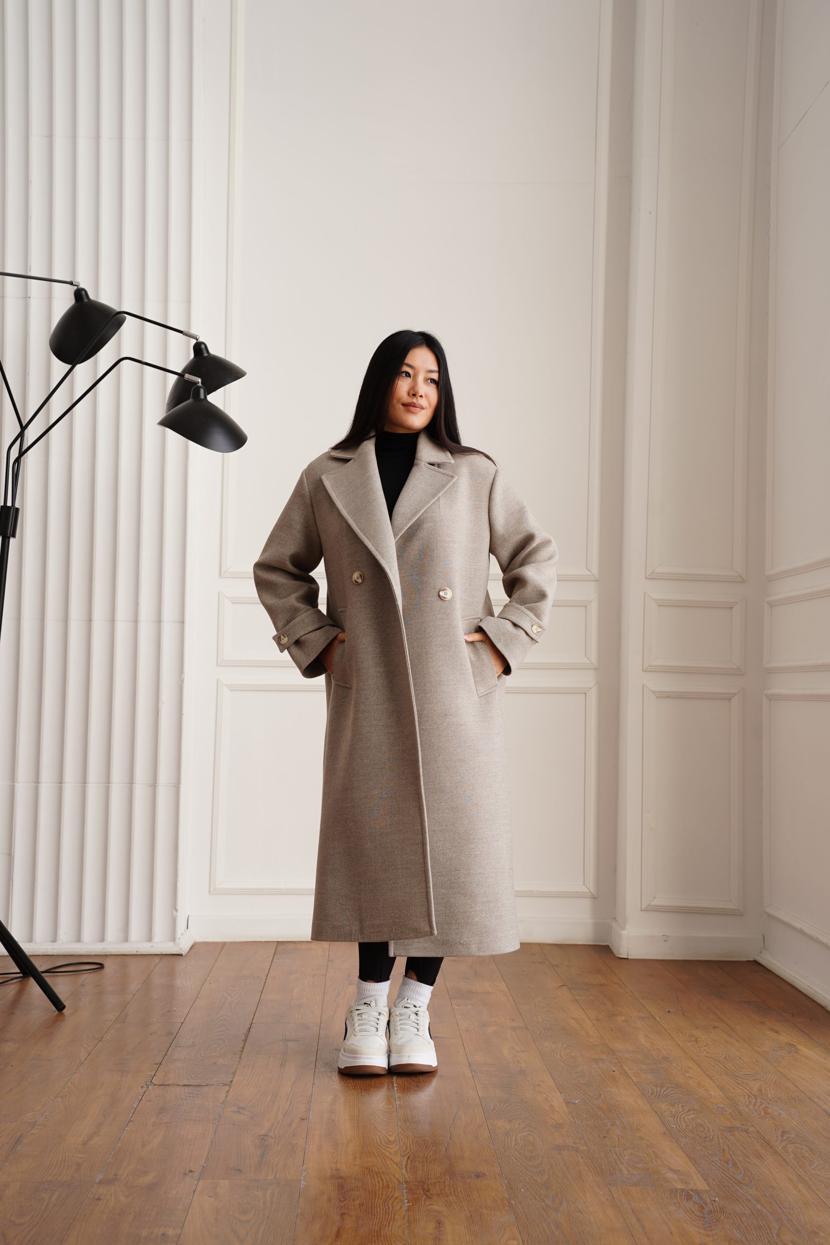 Закривається пальто на гудзики, виконані у кольорі самого виробу, що створює стильний та гармонійний зовнішній вигляд. Такий дизайн підкреслює сучасний стиль пальта, перетворюючи його на базову модель, яка легко впишеться у будь-який гардероб. Ви зможете носити його у поєднанні з різними образами, створюючи як романтичні, так і більш строго ділові образи.