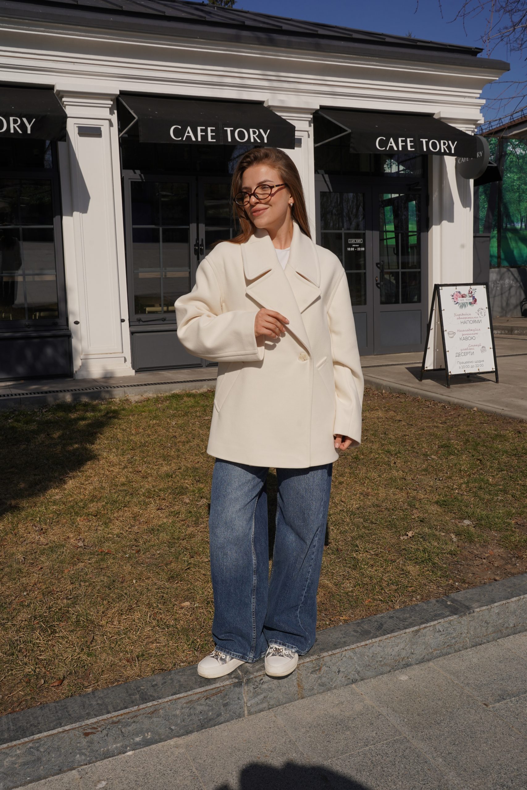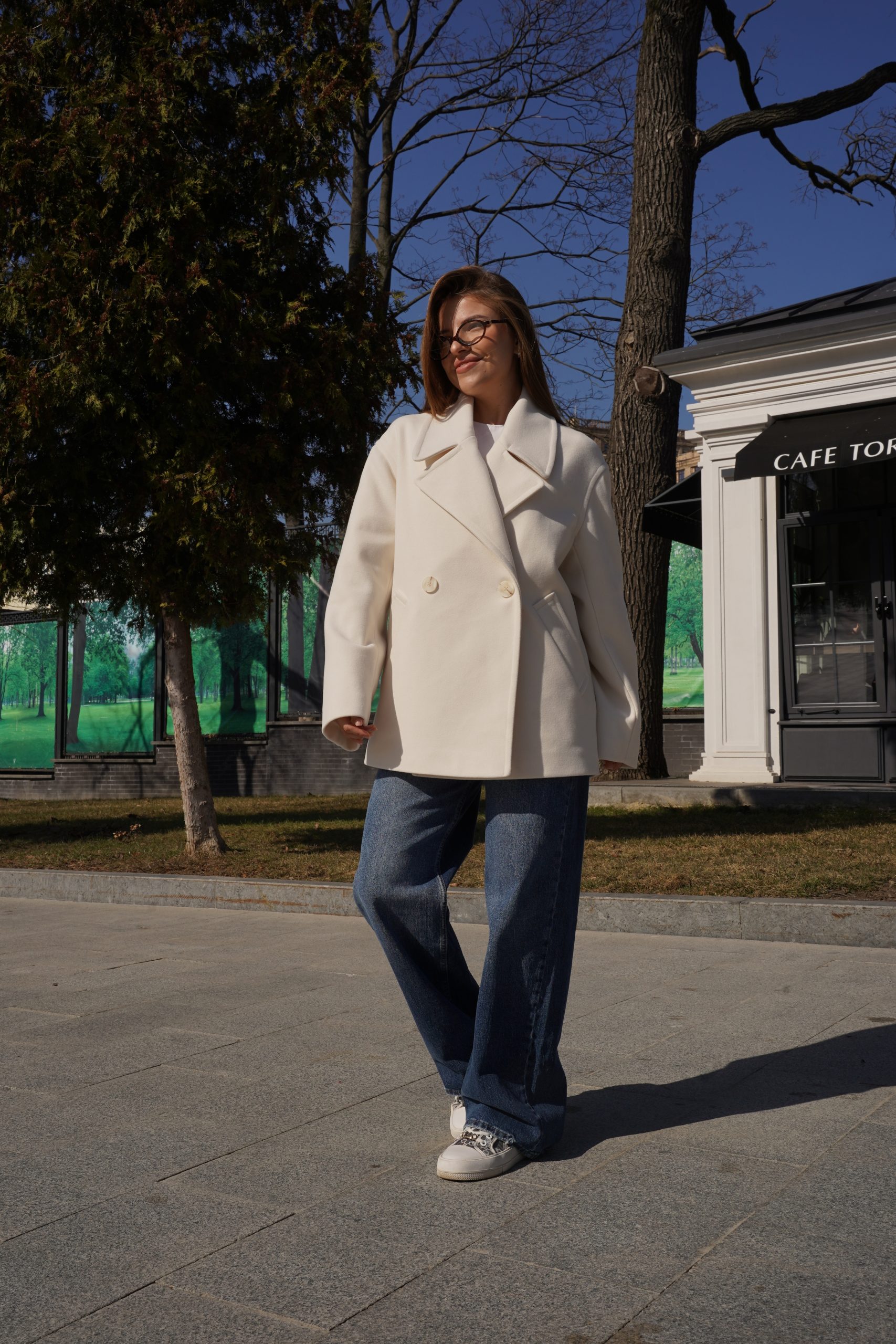 Модель має прямий, трохи вільний крій, який підходить для різних типів фігури і дозволяє легко поєднувати пальто з базовими та більш об'ємними образами. Класичний двобортний дизайн з великими гудзиками надає образу елегантності та актуальності.