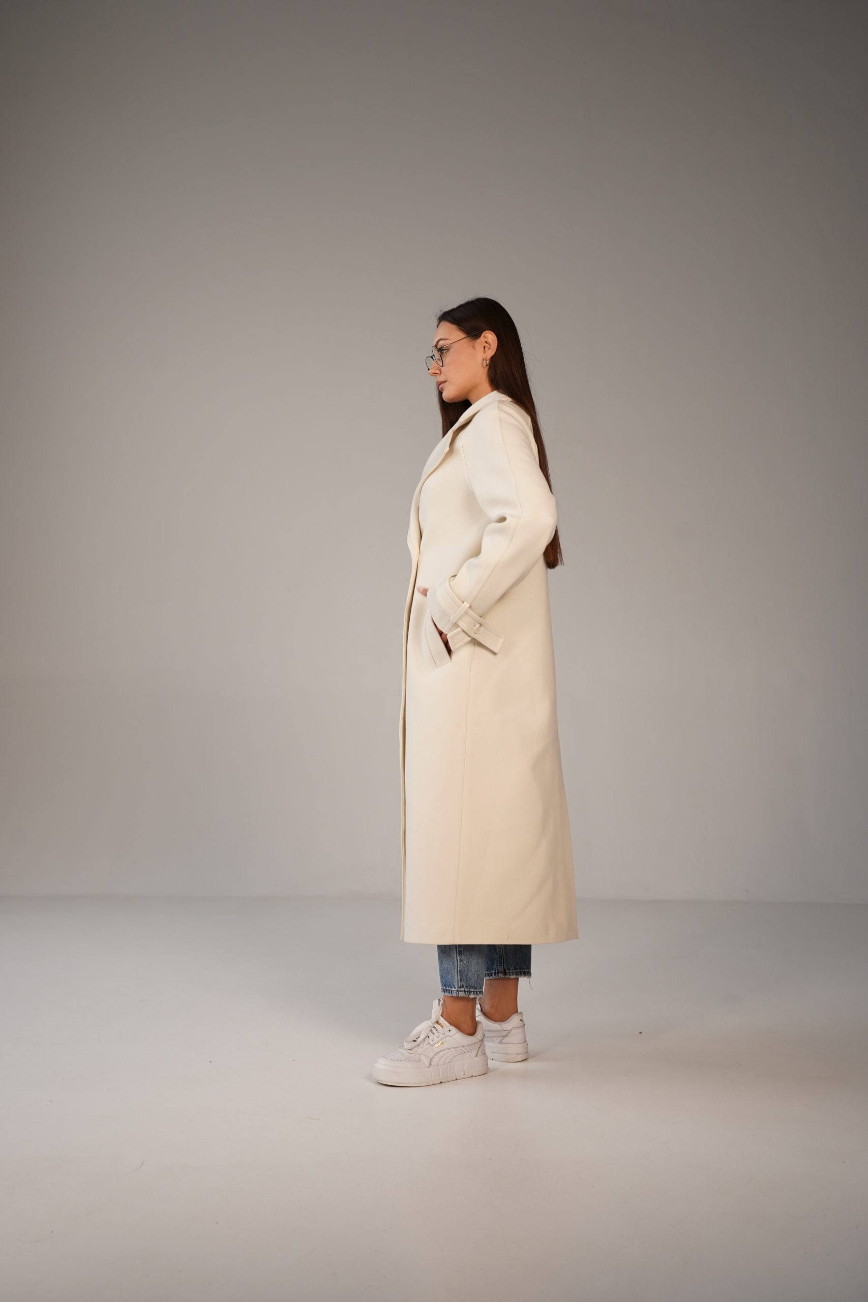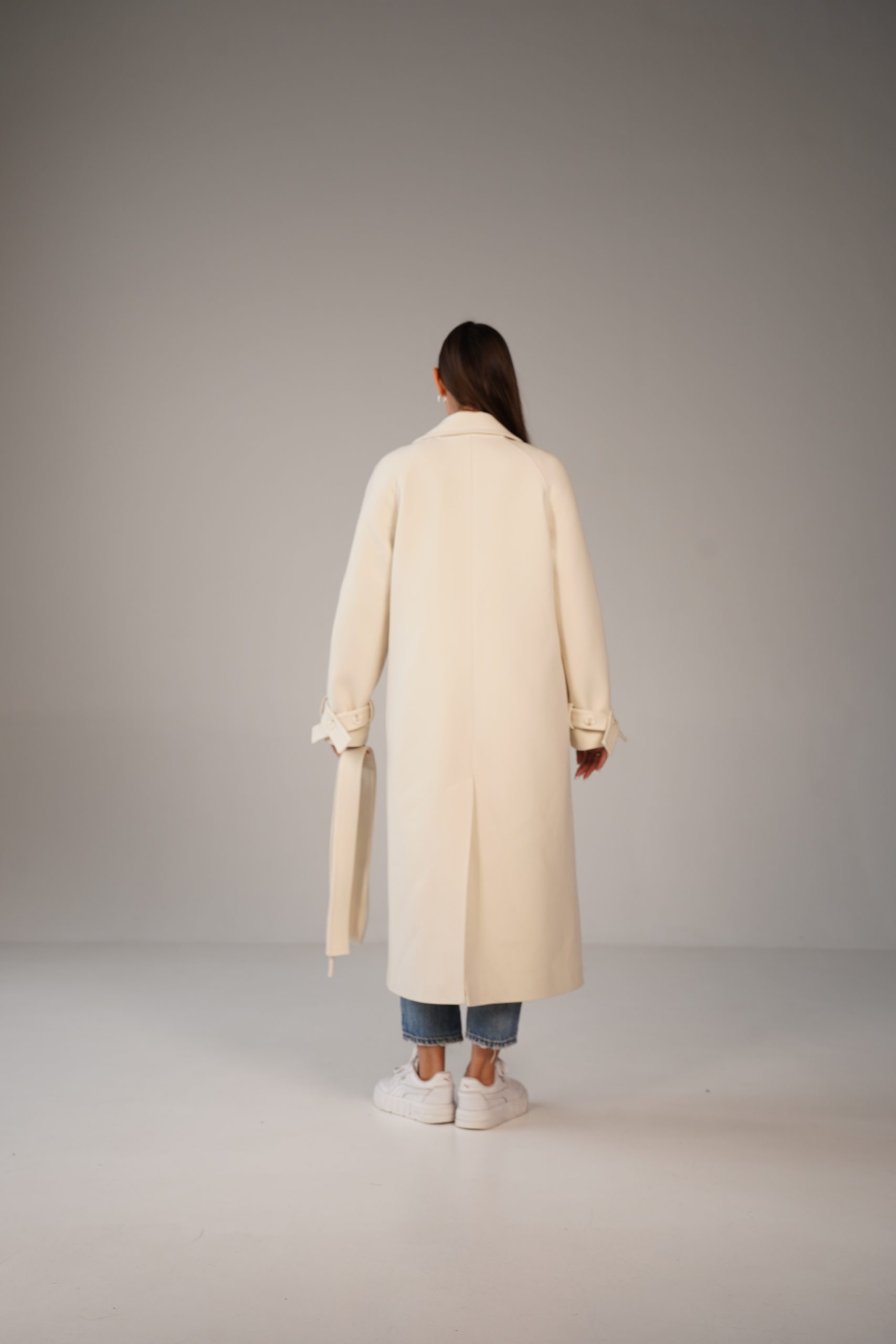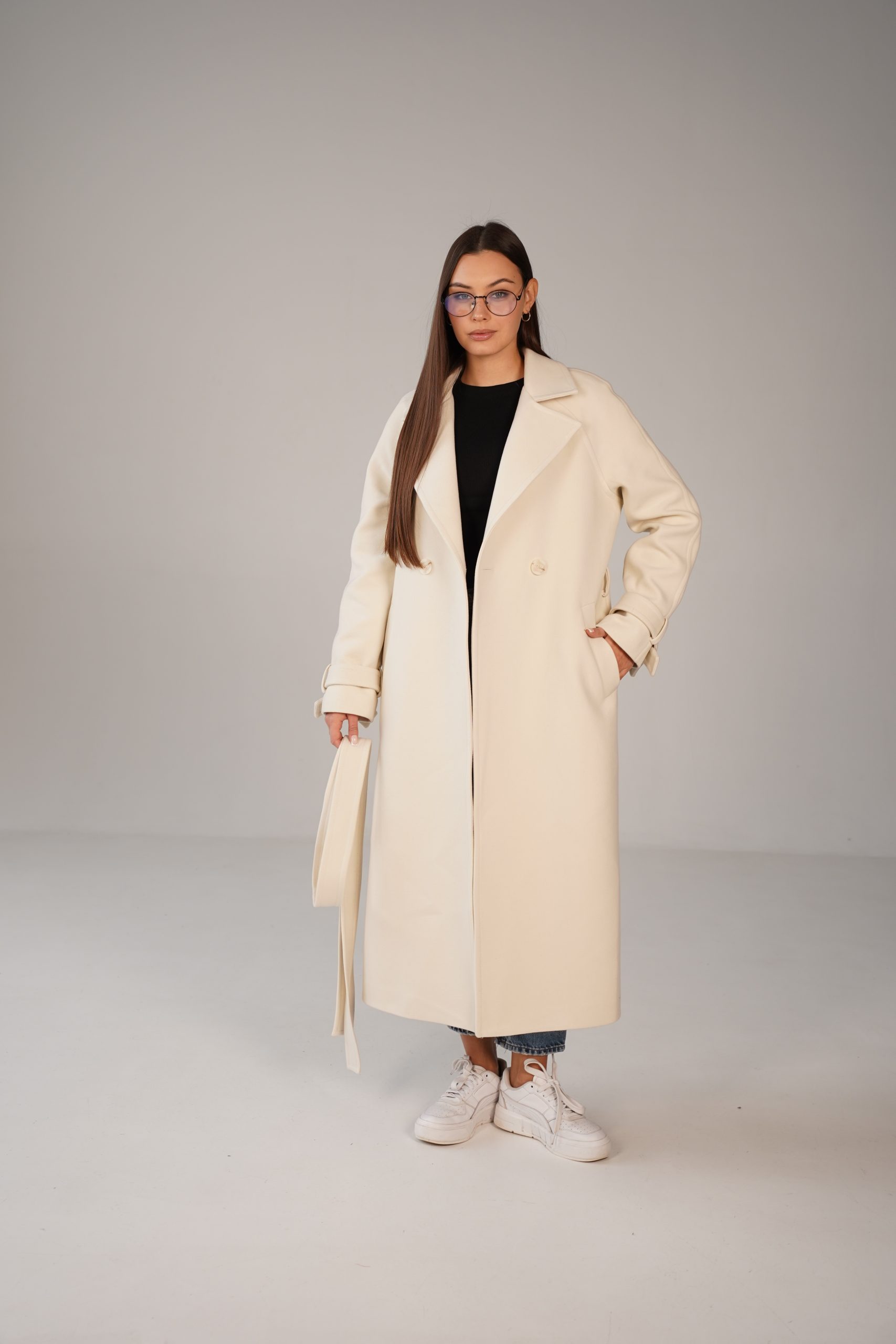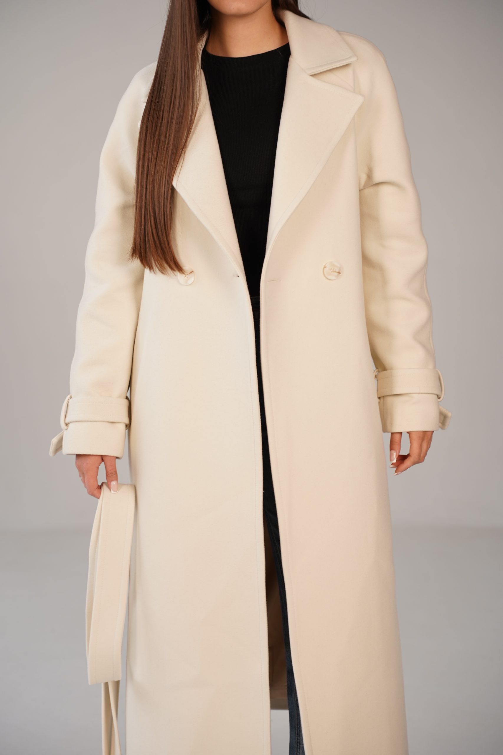 На особливу увагу заслуговує пояс, який дозволяє підкреслити талію і змінити силует залежно від переваг. Завдяки поясу пальто можна носити як у більш розслабленому, так і підкреслено жіночному варіанті. Манжети з декоративними елементами додають образу завершеності та акуратності.
