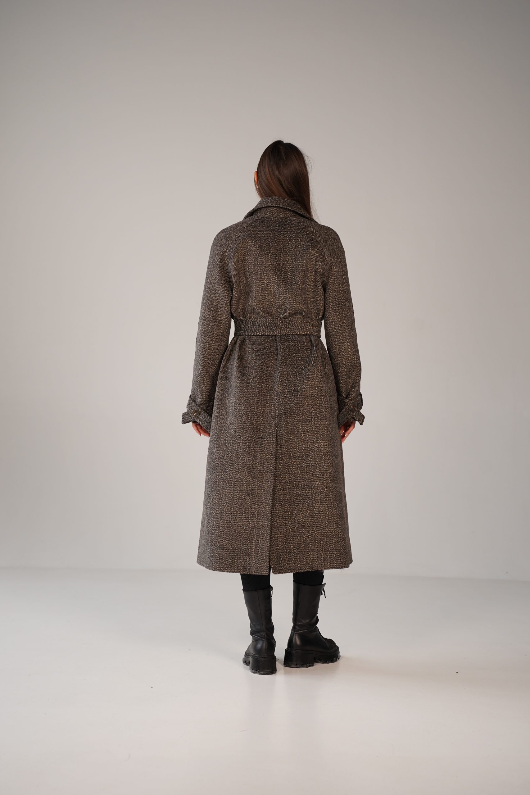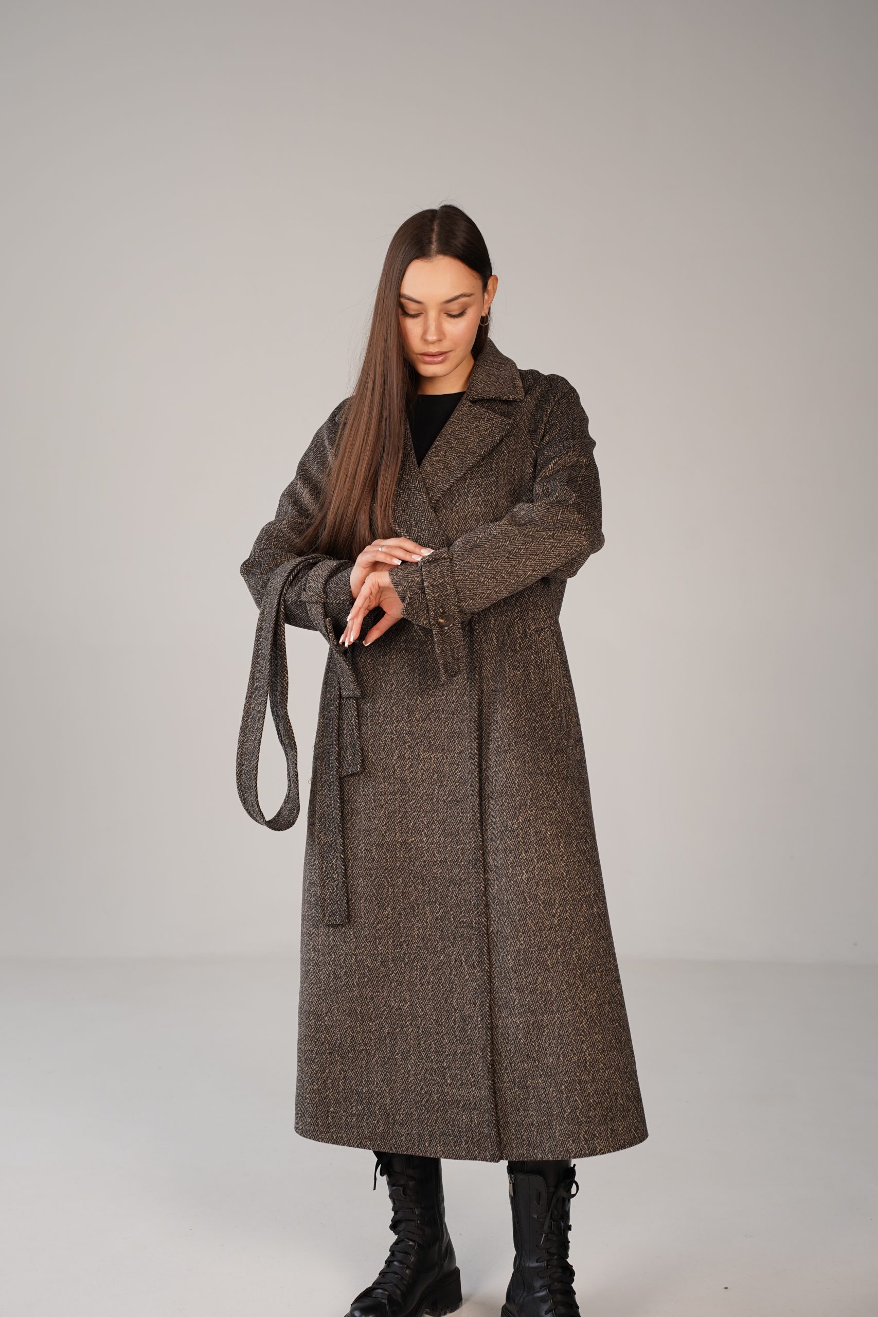 На особливу увагу заслуговує пояс, який дозволяє підкреслити талію і змінити силует залежно від переваг. Завдяки поясу пальто можна носити як у більш розслабленому, так і підкреслено жіночному варіанті. Манжети з декоративними елементами додають образу завершеності та акуратності.