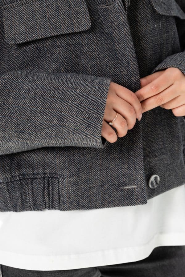 Функціональні накладні кишені додають практичність та стиль, дозволяючи зручно зберігати дрібні речі під рукою. Ці кишені не тільки зручні, але і є важливим елементом дизайну, який додає особливий шарм жакету. Вам не потрібно вибирати між стильним чином та зручністю – у цій моделі вдало поєднується все!